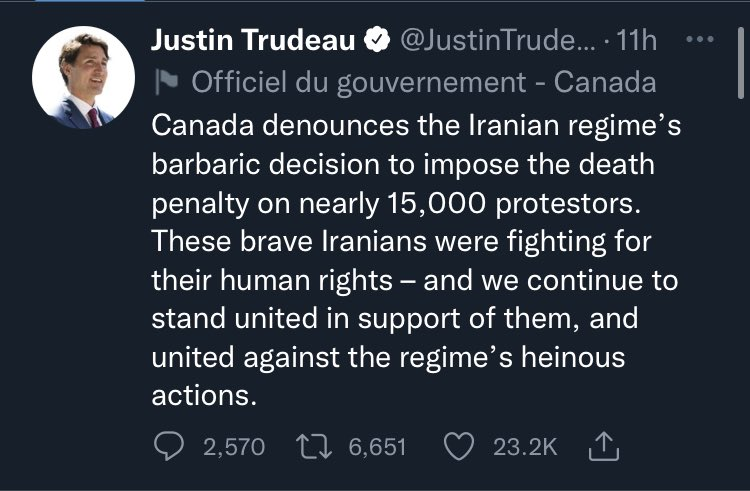Personalidades políticas como Justin Trudeau recogieron y transmitieron esta información, denunciando la «bárbara decisión» del gobierno iraní. El Primer Ministro canadiense ha borrado desde entonces su mensaje.
