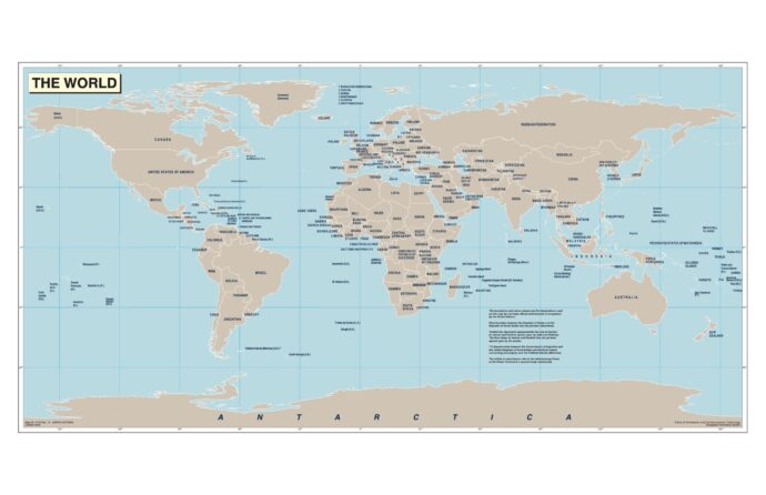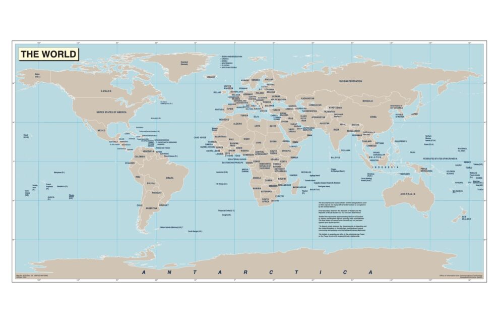 El último mapamundi, publicado en febrero de 2020 (ver más abajo) por las Naciones Unidas, adscribe el «archipiélago de las Chagos» a la República de Mauricio, tras más de cinco décadas de disputas para «completar la descolonización» entre la pequeña isla y el poderoso Reino Unido en esa parte del Océano Índico.