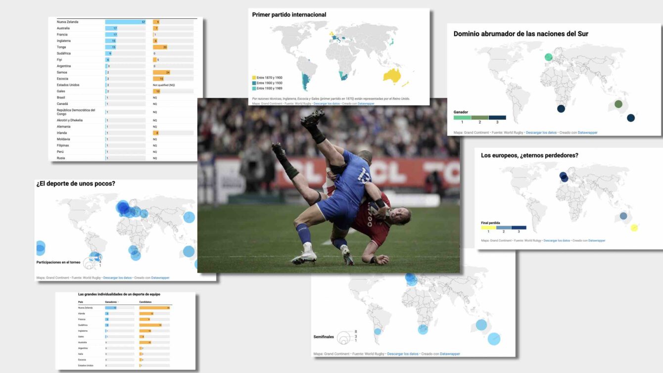 Más allá de esta historia apócrifa, que sin embargo relata las contradicciones de un deporte que se debate entre el elitismo (el rugby forma parte de las muy elitistas escuelas públicas británicas) y la celebración de una transgresión original, hemos querido reunir nueve mapas y gráficos para captar algunos de los puntos más destacados de un deporte a veces tan incomprensible como los rebotes de su emblemático balón.