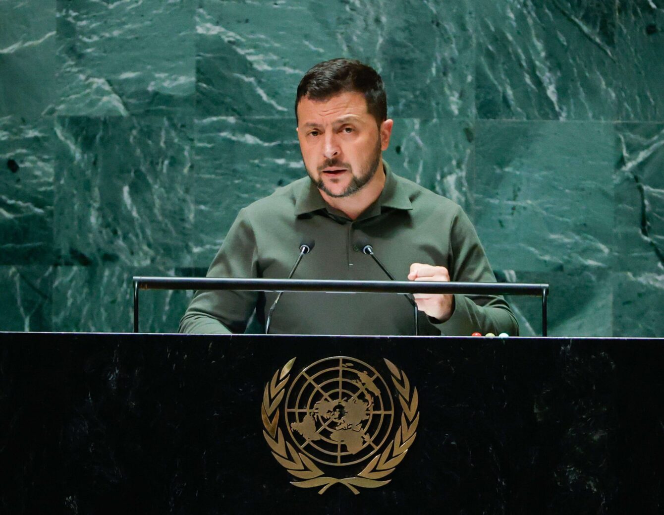 Cada década, Rusia desata una nueva guerra. Partes de Moldavia y Georgia siguen ocupadas. Rusia ha convertido Siria en ruinas. Y sin Rusia, nunca se habrían utilizado armas químicas en Siria. Rusia casi se ha tragado a Bielorrusia. Está amenazando claramente a Kazajstán y a los Estados bálticos… Y el objetivo de la actual guerra contra Ucrania es convertir nuestra tierra, nuestra gente, nuestras vidas, nuestros recursos en un arma contra ustedes, contra el orden internacional basado en normas. Muchos asientos del Salón de la Asamblea General podrían quedar vacíos si Rusia tiene éxito en su traición y agresión.
