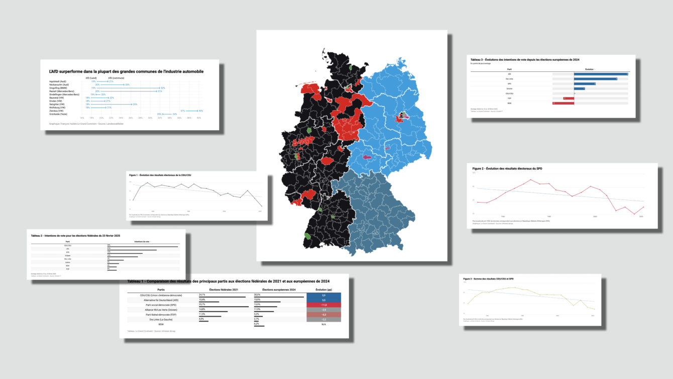 Pero la AfD también hizo campaña sobre cuestiones económicas, aprovechando la creciente preocupación por la salud de la economía alemana, la calidad de sus infraestructuras y su competitividad. Aunque es demasiado pronto para estimar con precisión el efecto de estas preocupaciones en el voto, ya se puede observar que la AfD ha obtenido mejores resultados en algunos bastiones industriales. Este es el caso, en particular, cerca de las mayores fábricas de automóviles alemanas: en Dingolfing, la mayor planta de producción de BMW en Europa, la AfD obtuvo el 32 % de los votos, frente a sólo el 19 % en toda Baviera. La ciudad tiene 20.000 habitantes y el mismo número de empleos en el sector automotriz.