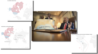 A finales de diciembre, un mes antes de la investidura de Trump, un mapa que muestra un Estados Unidos que se extiende hasta el Mediterráneo y el Mar de China Meridional fue visto más de 5 millones de veces en X, la red social de Elon Musk.