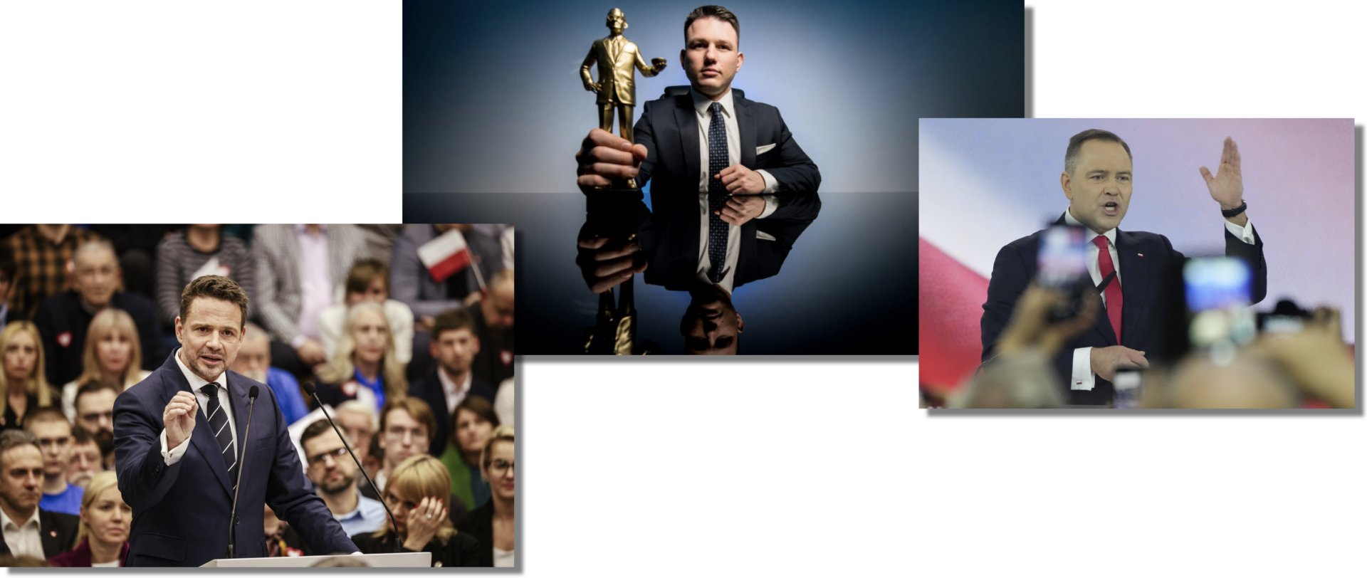 • Szymon Hołownia, el mediático presidente del Sejm, que emergió en las anteriores elecciones presidenciales que enfrentaron a Duda y Trzaskowski. En aquel momento era el tercero en discordia y anunció que votaría «a regañadientes» por Trzaskowski en la segunda vuelta. Desde entonces, las divergencias entre la KO y su partido, Polonia 2050, coaligado con el Partido Campesino (PSL) en la alianza Tercera Vía, han seguido existiendo, ya que el partido (y el hombre) buscan sobre todo existir en un terreno político liberal en crecimiento. Están perdiendo fuerza. Hołownia atrae alrededor del 5 % de los votos. Sin embargo, Polonia 2050 es un fiel aliado de la Coalición Cívica en el gobierno, y los votantes de Hołownia deberían votar mayoritariamente por Trzaskowski en la segunda vuelta.