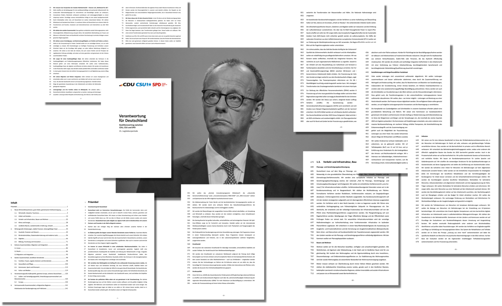 Quien domina el cambio, también puede moldear el futuro. Las coaliciones de la CDU, la CSU y el SPD siempre han sido fuertes cuando nos hemos atrevido a dar respuestas importantes. Ese es también nuestro objetivo hoy: vamos a demostrar que tres partidos del centro democrático pueden moldear juntos el país con éxito. Con este espíritu queremos garantizar la estabilidad, infundir una nueva confianza y renovar nuestro país a profundidad.