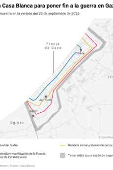 - Esta «primera fase» se refiere a cuatro puntos del plan presentado por Trump el 29 de septiembre: la liberación de los rehenes israelíes, la liberación de los prisioneros palestinos, una primera retirada del ejército israelí, y un aumento de la ayuda humanitaria autorizada a entrar en el enclave.