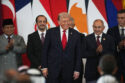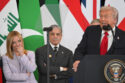 (Trump se vuelve hacia los jefes de Estado que están detrás de él)