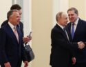 De derecha a izquierda: Yuri Ushakov, asesor presidencial ruso, Vladimir Putin y Steve Witkoff, durante una reunión celebrada el 11 de abril en San Petersburgo.
