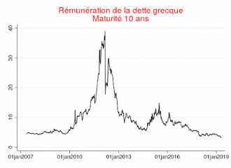 Non, ce serait une histoire bien triste. D’après ELSTAT, le taux de chômage était toujours de 18,5 % en Janvier 2019 contre 7,8 % en Janvier 2008 (mais 27,8 % au pire de la crise). Le PIB au quatrième trimestre de 2017 n’a atteint que 75 % de son niveau d’il y a 10 ans. Les politiques d’austérité peuvent réduire le stock de dette mais elles ont un coût important.
