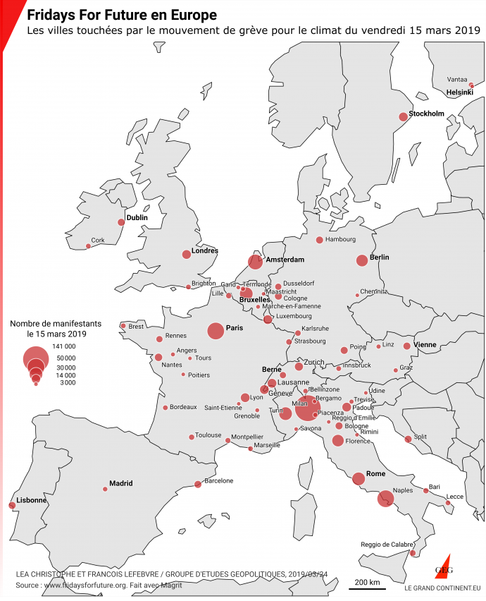- PELEGRIN Clémence, RIVIERA Matteo, Le mouvement Fridays For Future en Europe, Le Grand Continent, 17 mars 2019