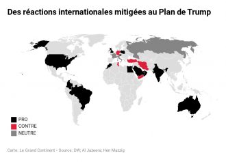 Les réactions de la communauté internationale n’ont pas tardé à venir. Dans cette carte, créée exclusivement pour Le Grand Continent, nous avons représenté les réactions des différents pays qui se sont exprimés jusqu’à présent sur le plan.