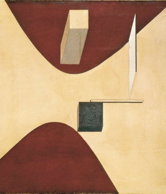 C’est dans cette perspective que prennent sens les projets architecturaux qui fleurissent après la révolution soviétique, que l’on a trop souvent réduits à une adhésion naïve à un idéal industrialiste. Il est significatif que ce soient souvent des projets de peintres et de graphistes plutôt que d’architectes de profession. Tels sont les prouns d’El Lissitzky. Ces « projets pour l’affirmation du nouveau » étaient pour lui un « relais sur le chemin de la peinture à l’architecture 6 ». Cette notion n’indique pas un point intermédiaire entre une esquisse picturale et une réalisation architecturale, mais un temps de transition où l’imagination d’un monde nouveau se traduit en formes spécifiques qui ne sont ni des tableaux à voir ni des bâtiments à habiter. Ces formes sont destinées à forger une nouvelle perception de l’espace et un nouveau sens de ce que construire et habiter un monde veut dire. Aussi les prouns se présentent-ils comme des axonométries d’un type particulier. Celles-ci récusent l’illusionnisme de la représentation picturale de la troisième dimension. Mais leurs articulations de plans dans un espace sans point de fuite ne sont pas pour autant les modèles de constructions déterminées. Elles récusent en même temps l’espace à deux dimensions – où l’on ne construit rien de réel – et l’espace à trois dimensions – où l’on construit des bâtiments clos sur eux-mêmes et enfermés dans le vieux sens du réel. Cette double transgression s’effectue au nom de cette quatrième dimension sur laquelle tous les artistes spéculent à l’époque, la dimension du temps. Le temps apparaît comme la véritable dimension de l’infini, au sein de laquelle toute construction n’est qu’une étape, voire un véhicule pour aller plus loin. Il faut construire pour une humanité en mouvement non point tant des séjours que des environnements. Ces environnements sont faits pour des gens qui se déplacent, mais ils doivent eux-mêmes pouvoir bouger, être modifiés et réagencés par ces hommes en mouvement.