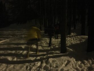 Le chemin montait jusqu’au-dessus des pistes, au-dessus des forêts. Ils montèrent jusqu’à ce que tout leur semble minuscule, vu d’en haut. Les motoneige parcoururent quatre kilomètres, mais on ne trouva personne — seulement des vêtements sur le chemin, à l’endroit où les pentes étaient boisées. Puis Simone et les trois autres sauveteurs sautèrent de leurs engins et chaussèrent des skis.