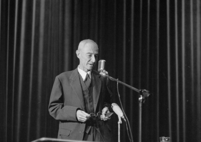 Lire Oppenheimer — l’écouter, aussi. Contrairement à une idée reçue, le père de la bombe n’a jamais regretté son invention, du moins publiquement. Conscient de ses effets sur l’humanité, il a tenté de l’expliquer, de la justifier et de l’articuler avec une pratique idéalisée de la science. Au milieu de notre série estivale de textes choisis, nous vous proposons aujourd’hui d’entendre ses réponses.