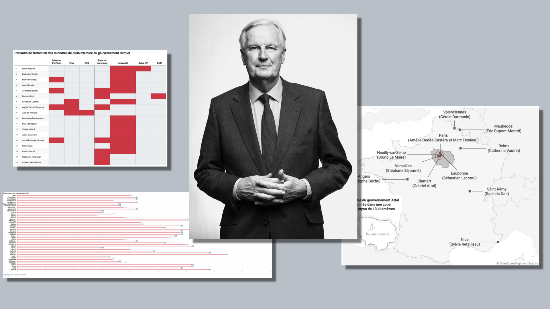 La géographie du gouvernement Barnier présente une rupture par rapport à celle du gouvernement Attal et Borne.