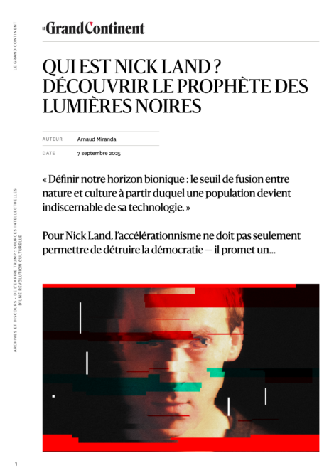 — Entretien vidéo avec Nick Land (YouTube)