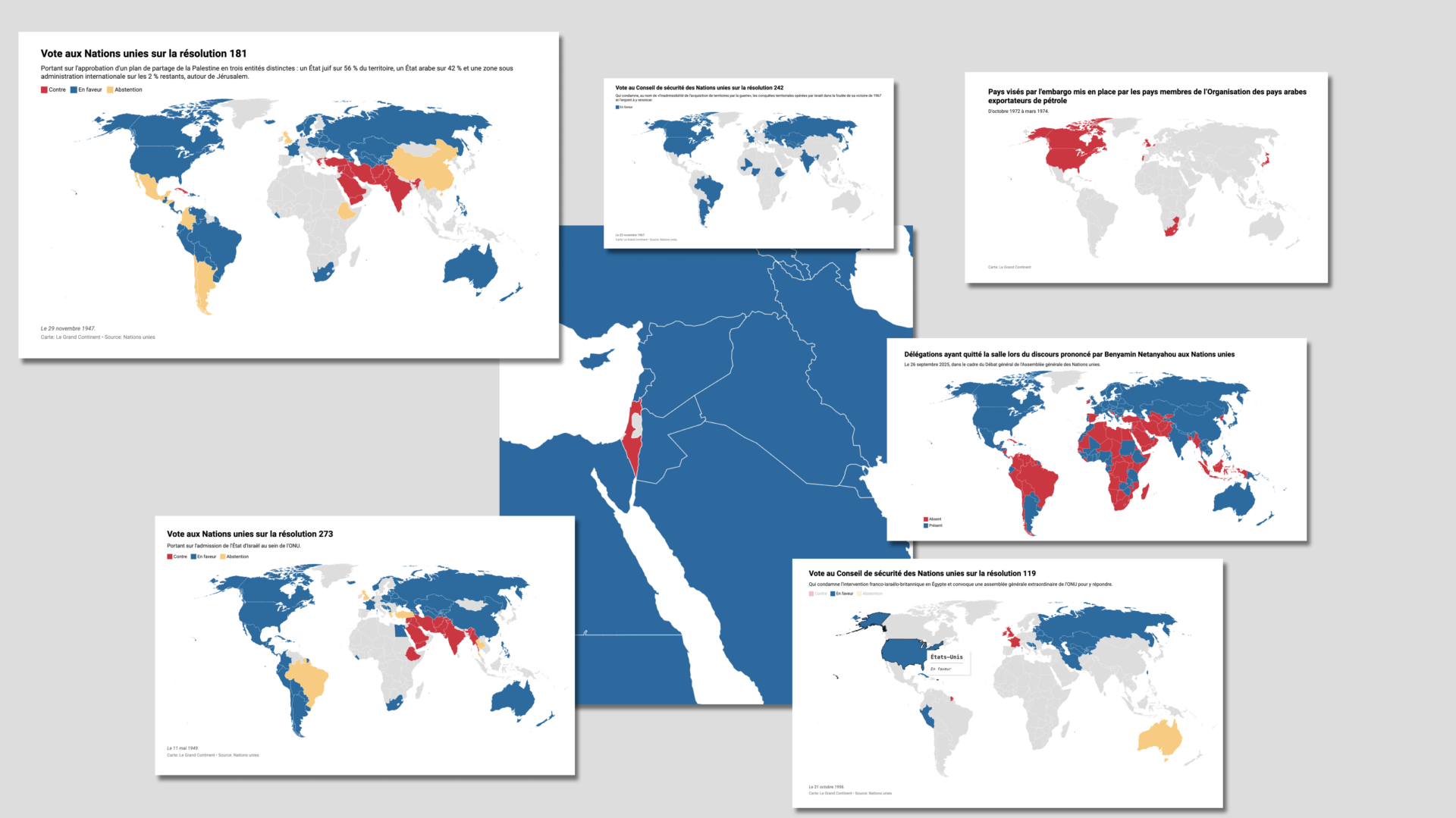 - Résolution 181 II, Détail des votes sur le « Gouvernement futur de la Palestine », Bibliothèque numérique des Nations Unies, 29 novembre 1947.