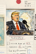 Sans doute faut-il alors soutenir que Trump, dans sa fascination pour les cartes, se projette lui-même dans cette position divine. Le point de vue d’un dieu — ce que Leibniz appelait le « géométral de toutes les perspectives » — semble poursuivre le président, sans qu’il puisse jamais véritablement s’y élever.