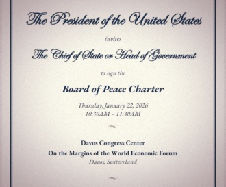 On reconnaît dans cette dernière disposition — d’ordinaire purement technique — un gage de l’importance du « branding » Trump. Ce sceau, utilisé comme un « logo » du Conseil de la paix pourrait être révélé à Davos le 22 janvier.