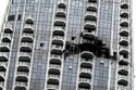 Des ouvriers inspectent les dégâts causés à l’hôtel Address Creek Harbour après qu’il a été touché par une frappe de drone dans la nuit, à Dubaï, aux Émirats arabes unis, le jeudi 12 mars 2026. © AP Photo/Fatima Shbair