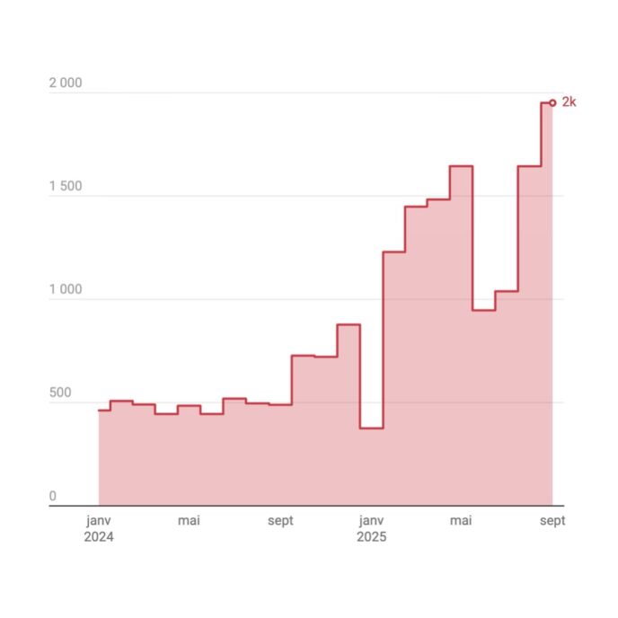 En cinq ans, les sommes engagées par le gouvernement fédéral en faveur de Palantir ont plus que doublé, passant d’environ 410 millions de dollars en 2020 à près de 900 millions cette année.