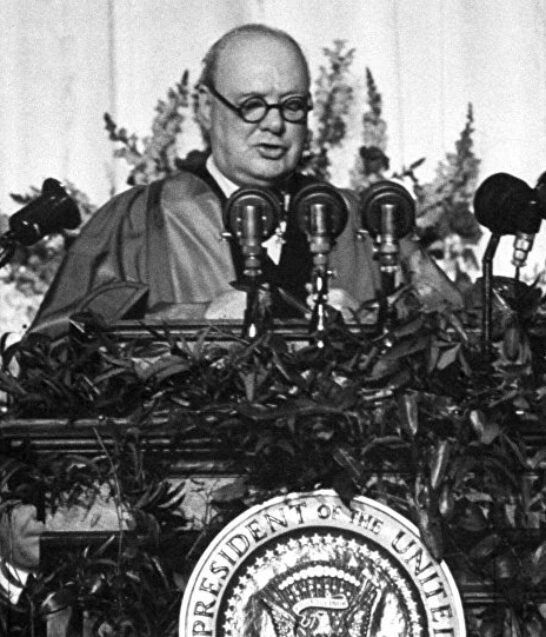 Le 5 mars 1946, Winston Churchill prononçait au Westminster College de Fulton, dans le Missouri, en présence du président Truman, un discours célèbre, qui dénonçait le « Rideau de fer » qui partageait l’Europe de Stettin à Trieste, définissait une « relation spéciale » entre les peuples anglophones, et proposait un plan d’organisation du monde, « le nerf de la paix », qui inspirera le plan Marshall.