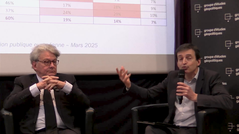 Jean-Yves Dormagen ne pouvait pas être là ce soir, mais nous avons le plaisir d’accueillir Emmanuel Rivière, politologue français, qui nous aidera à le présenter très clairement. Marie Krpata, chercheuse au comité d’étude des relations franco-allemandes, car la dimension allemande est très importante pour comprendre la réponse européenne. Enfin, Thierry Breton, commissaire européen au marché intérieur de 2019-2024. Vous êtes aussi quelqu’un qui, d’une certaine manière, a anticipé le barycentre des Européens. Nous verrons cela dans les sondages.