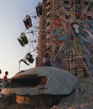 Alla fine della mia passeggiata a Durazzo, si raggiungeva un’area informalmente conosciuta dalle generazioni più anziane come Volga – dal nome di ispirazione sovietica di un vecchio hotel – e a noi bambini come Rezistenca, o piazza della resistenza, dopo un memoriale comunista che celebrava la resistenza dell’Albania all’invasione fascista durante la Seconda Guerra Mondiale. Il memoriale consisteva in diversi gradini di cemento in salita – spesso usati dai bambini come scivoli – che conducevano a una grande scultura socialista di un milite ignoto. Il suo sguardo era fisso sul mare Adriatico e l’espressione dei suoi occhi era quasi malinconica. Ma le sue mani erano saldamente alzate, teneva una pistola puntata verso l’Italia, dall’altra parte del mare. Era un’immagine plastica di violenza e di desiderio.