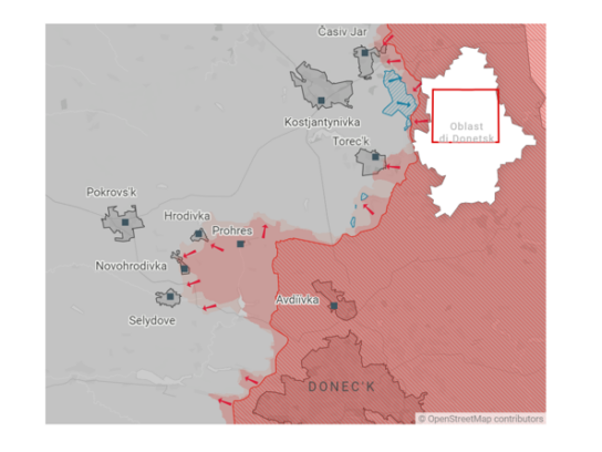 L'avanzata russa verso Pokrovsk, nell'oblast' di Donetsk, si è accelerata negli ultimi giorni. Mosca è ora a soli dieci chilometri dalla città, che è un importante nodo logistico. La conquista di Pokrovsk minaccerebbe seriamente le linee di rifornimento ucraine nel Donbass.